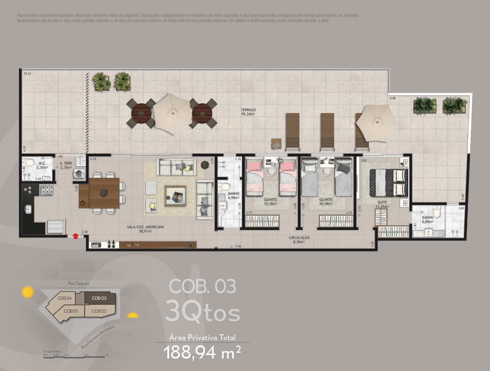 Móveis e equipamentos não fazem parte da entrega do empreendimento. Para aquisição dos mesmos, será feita uma cobrança a parte (extra-empreitada).